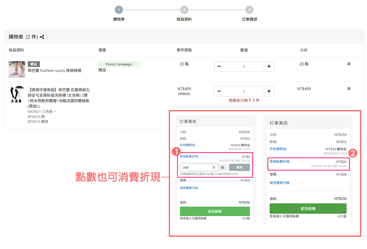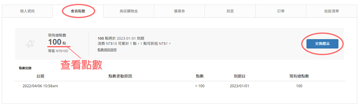 2. 點數可消費扣抵,亦可至兌換贈品頁面進行兌換