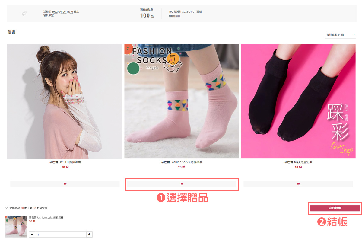 3. 點選想要的贈品後,即可至結帳頁面結帳